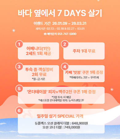 넓고 밝은 공간에서 바다와 광안대교, 마린시티의